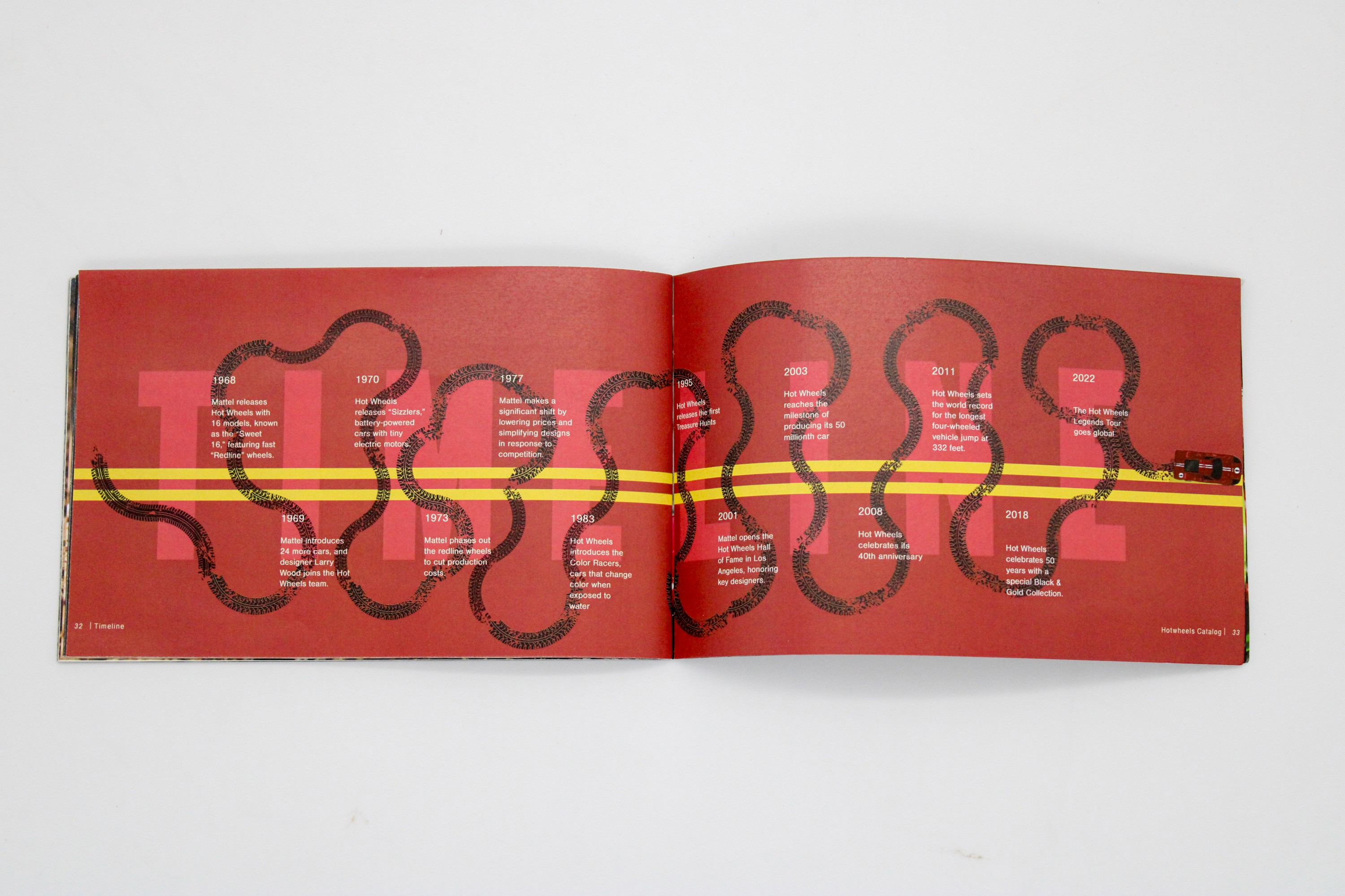 a conceptual product catalog designed for hot wheels, focusing on dynamic layout, bold typography, and high-energy composition. the project explored hierarchy, pacing, and grid systems to showcase products in a visually engaging format. final spreads balance brand personality with clear product organization.