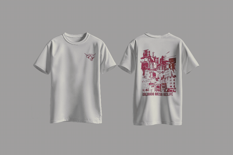 colorado mesa university residence life approached me to design move-in t-shirts for their annual fall housing move-ins. the primary goal was clear and functional: identify move-in staff at a glance so new students and families could easily find help during a high-traffic, high-stress day. the shirts needed to feel official, on-brand, and highly visible while being worn campus-wide by residence life staff and student athletes assisting with move-ins.